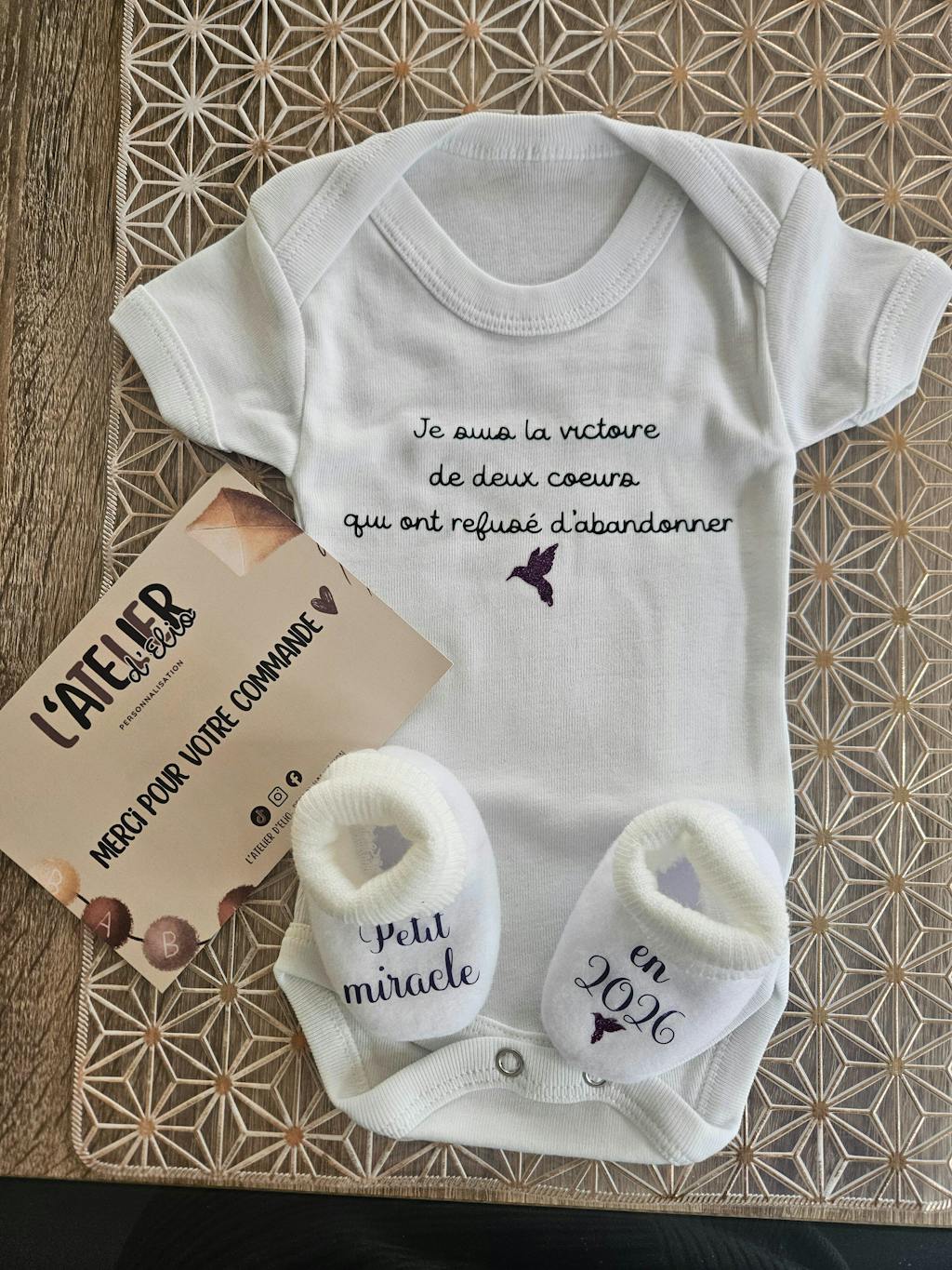 Une création signature, idéale comme cadeau de naissance, mêlant confort, qualité et émotion.